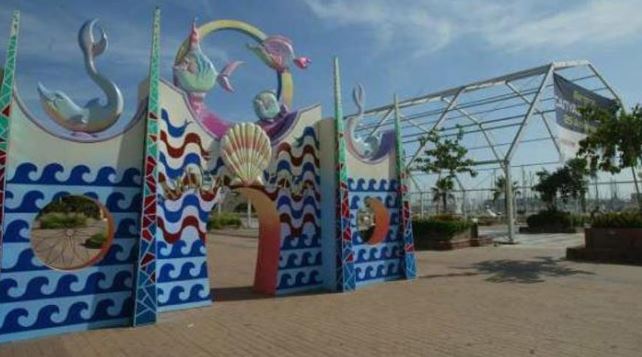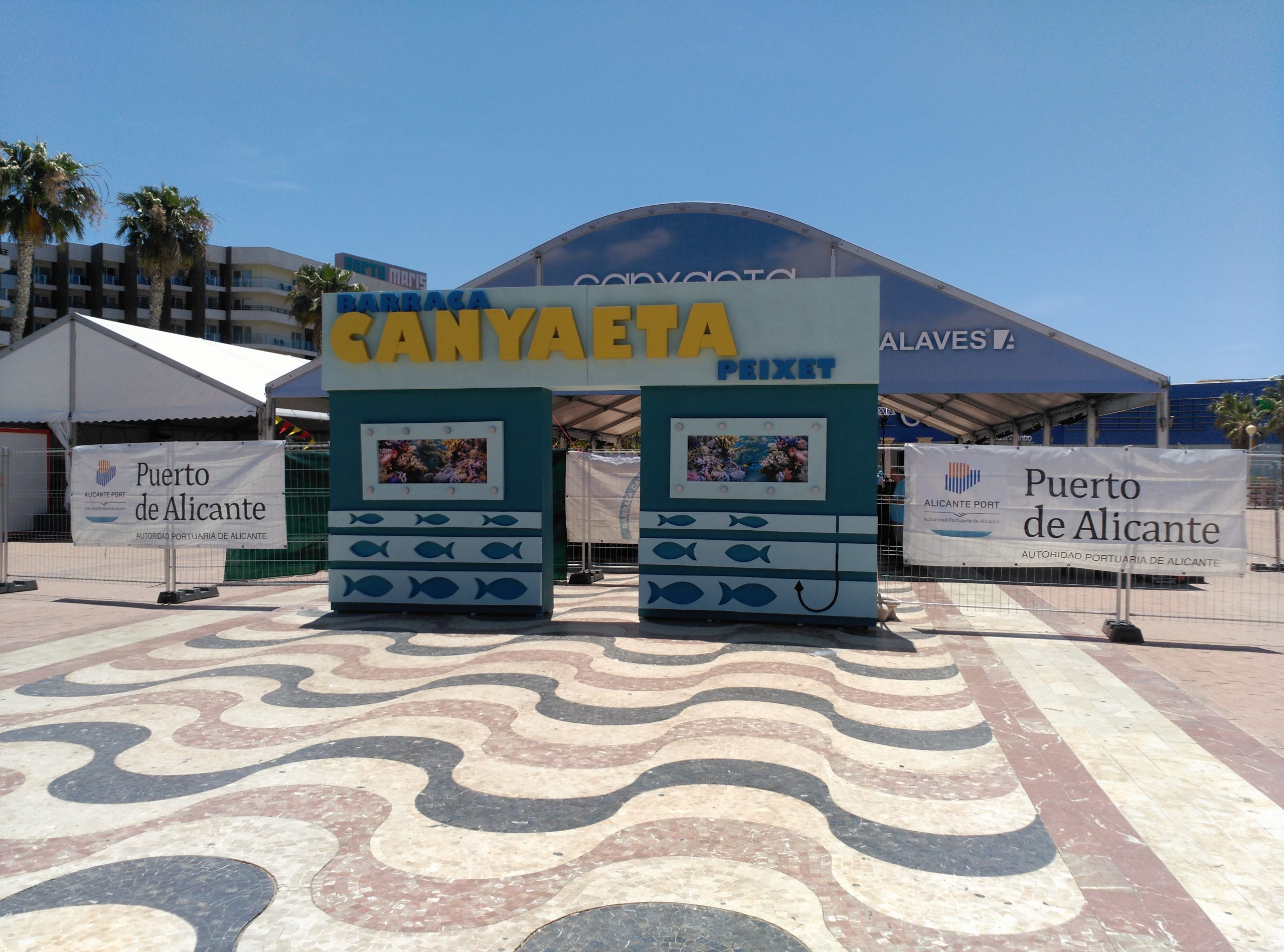 La barraca se instala en la explanada del puerto, frente a la puerta del Hotel Meliá.